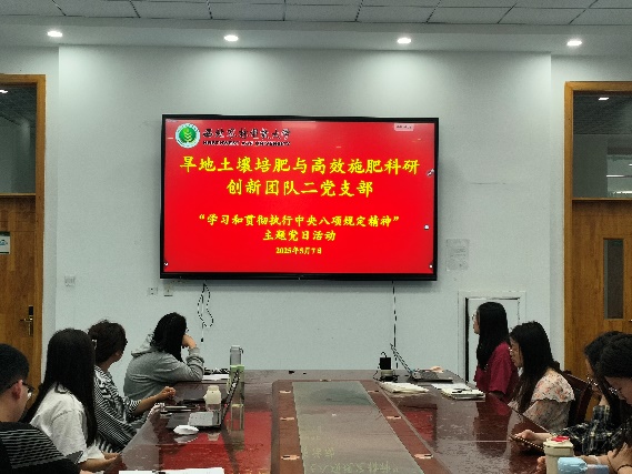 5月7日,旱地土壤培肥与高效施肥科研创新团队二党支部组织开展"学规守纪 固本清源"主题党日活动,通过观看学习视频等形式强化纪律教育,引导党员加强党性修养,增强党员干部廉洁自律的自觉性,切实筑牢思想防线。会议由支部副书记王媛主持,支部全体成员参加。