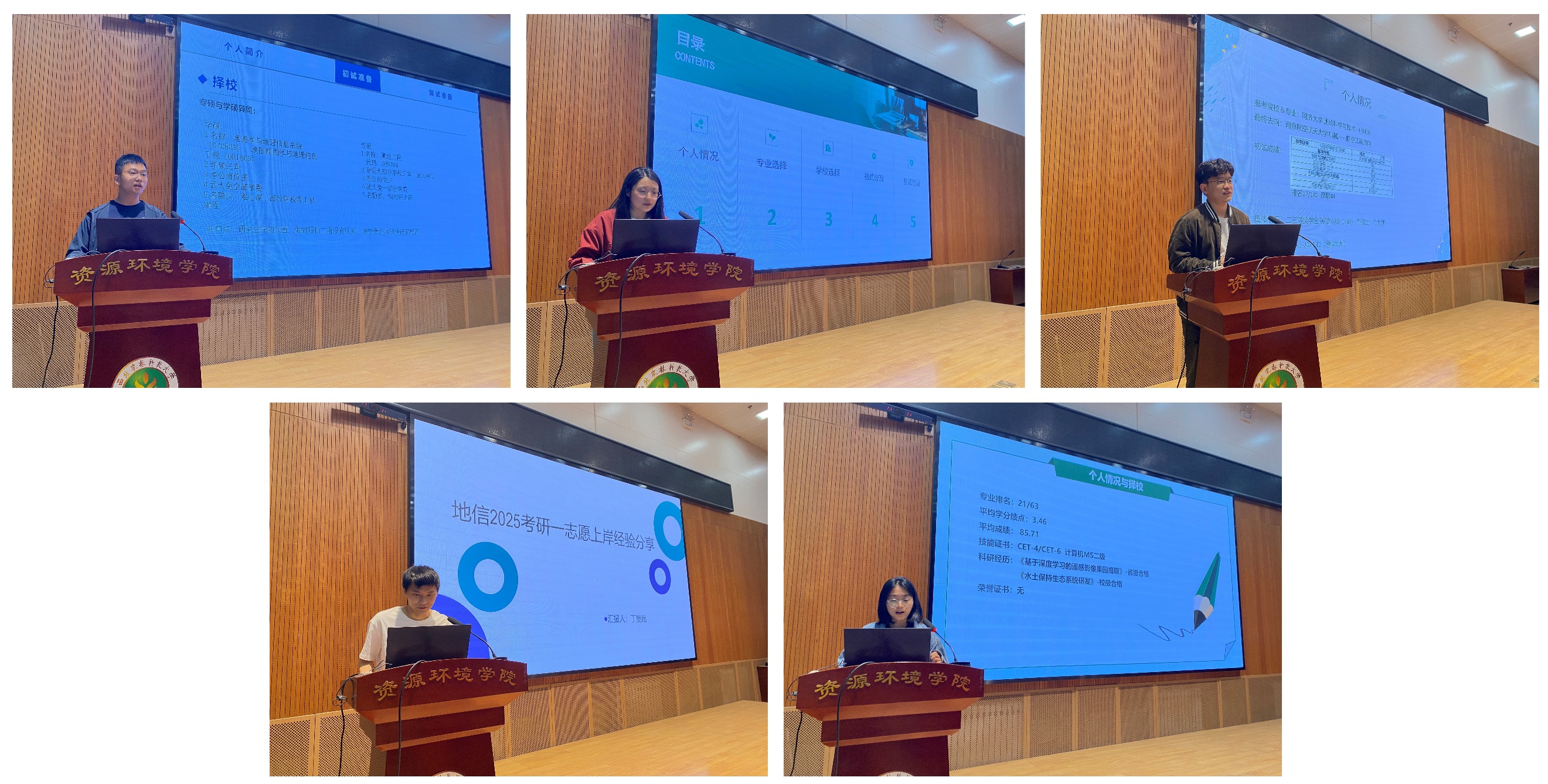 为助力公司学子更深入地了解研究生入学考试的现状,掌握院校选择与备考策略等关键信息,2025年5月8日晚,本科生地科党支部2025届考研经验分享会在资环报告厅举办。活动特别邀请了考研上岸的马世龙、吕昀朔、刘恺、丁旻晟、杨芷茵五位优秀学子,他们分别结合自身经历,为在场的同学们答疑解惑。