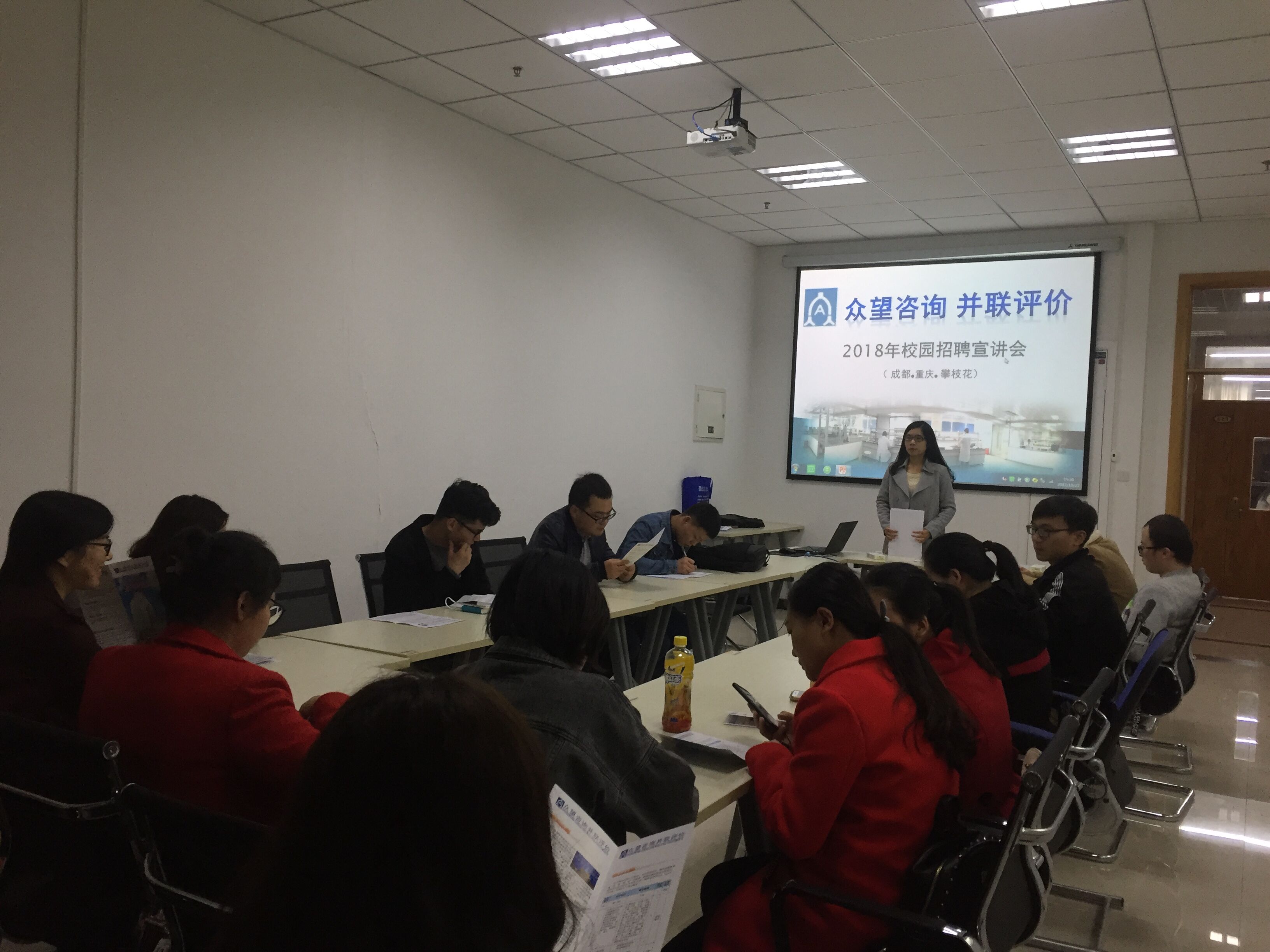 招聘会上,李经理向同学们详细介绍了四川众望安全环保技术咨询有限公司,并针对员工们关心的薪酬待遇、员工培养、职位晋升、员工福利等方面进行了细致的解答。宣讲会上李经理站在企业的角度向同学们说明了目前的就业形势以及当代老员工求职所要注意的问题。李经理最后对到场员工提出了中肯的建议,希望同学们可以抓住机遇,迎接挑战,通过自己的努力在未来的工作岗位上发光发热。宣讲会结束后,有志加入四川众望安全环保技术咨询有限公司的员工现场投递了简历并进行了面试。