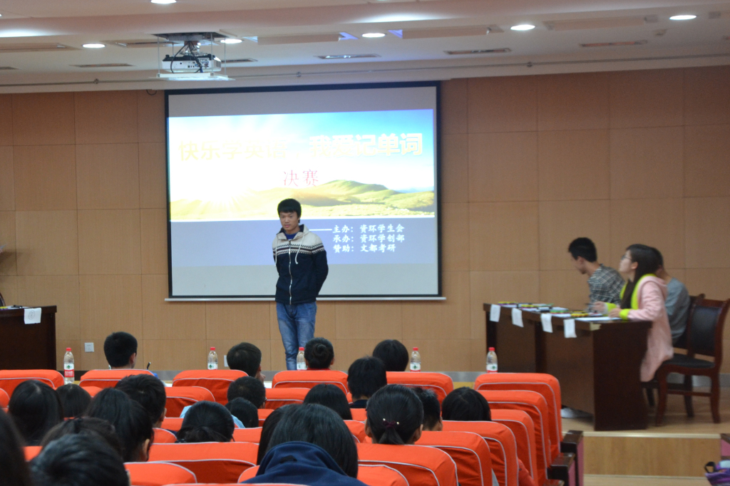 为培养同学们对英语的学习兴趣,挑战自己的记忆极限,营造良好的学习气氛。经过了紧张的报名与初赛,11月24日,英国365集团官网“快乐学英语,我爱记单词”决赛在各位同学的热切期待下拉开了序幕。英国365集团官网团工委书记唐帅、员工会研究生会秘书长刘庆麟、2013级辅导员张紫、团工委副书记乔亚蓓、员工会主席刘智川、员工会副主席张凯、苏畅、李思雯出席了本次比赛。外语系苏都等三位老师担任本次比赛的评委。