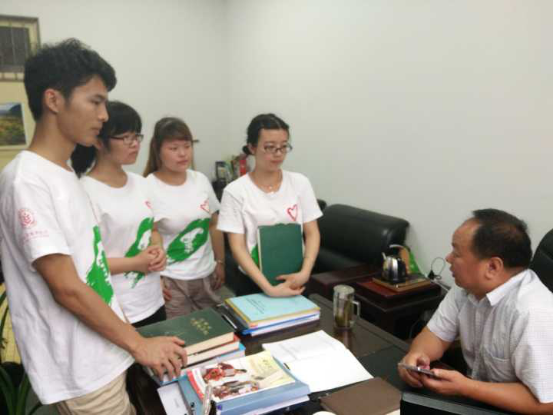 早上9点,调研服务队队员们骑自行车来到了勉县县委借阅勉县县志并了解大致情况,县委组织部副部长李成春知道来意后很热情地接待了队员们。李副部长拿出了勉县不同年份的县志和一些有价值的资料给队员们参考,接着队员们对勉县休闲农业资源的相关问题提出了疑问并得到了李副部长的耐心解答。据此,队员们了解到勉县很多村都有其独特的农业产业。近年来,勉县各镇充分挖掘其特有的农业资源,在勉县政府的鼓励下加大对休闲农业旅游业的投入,依托茶园、果园、油菜花等特色农业资源,结合定军山、天荡山等历史文化古迹,利用云雾山、汉江等优美的自然风光,采取产业引导、项目帮扶等举措,大力发展休闲观光农业,以此为契机发展经济、实现脱贫致富的目的。像勉阳镇黄家沟村和天荡山休闲农庄,已经成为了当地休闲农业旅游的品牌而且在全国范围内都有一定的知名度。
