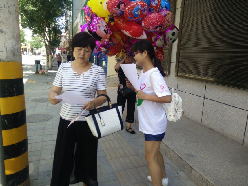接下来的几天里,服务队走进社区,进行志愿服务工作。队伍分成两组,分别进行安全防范知识宣讲和社区卫生服务。一组成员向当地居民讲解了一些家庭用电用火安全、假期员工人身安全等方面的安全防范知识;另一组则对街道、公司、广场等公共场合的卫生做了一定的贡献。安塞海拔较高,太阳辐射强,队员们额头上的汗珠从未中断过,但都毫无怨言。