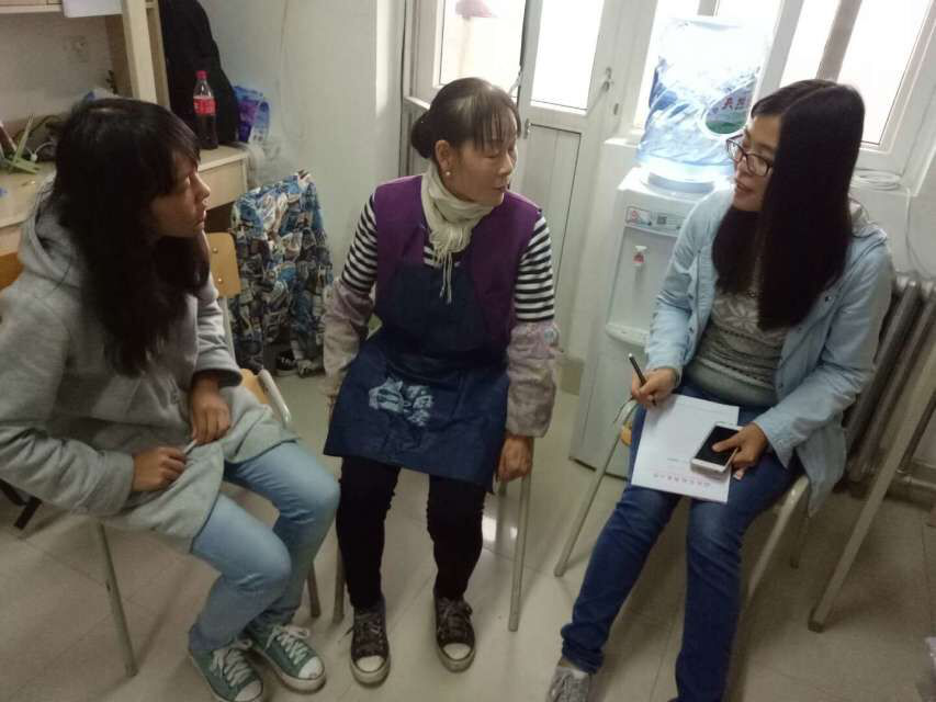 志愿者们与保洁阿姨交流