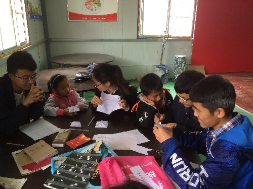 5月14日上午,代家坡的志愿者们在村助曹圣言和吴鸿宇的带领下来到代家坡村委会进行支教活动,此次支教活动与以往不同的是,他们同农公司阳光团工委的同学们进行了合作,实现了对孩子们的一对一辅导,对于孩子们问的每一个题,志愿者们都耐心解答,声情并茂地为孩子们详细解释,每做完一套卷子,志愿者们都会认真检查,标记错误,详细批改,耐心纠错。