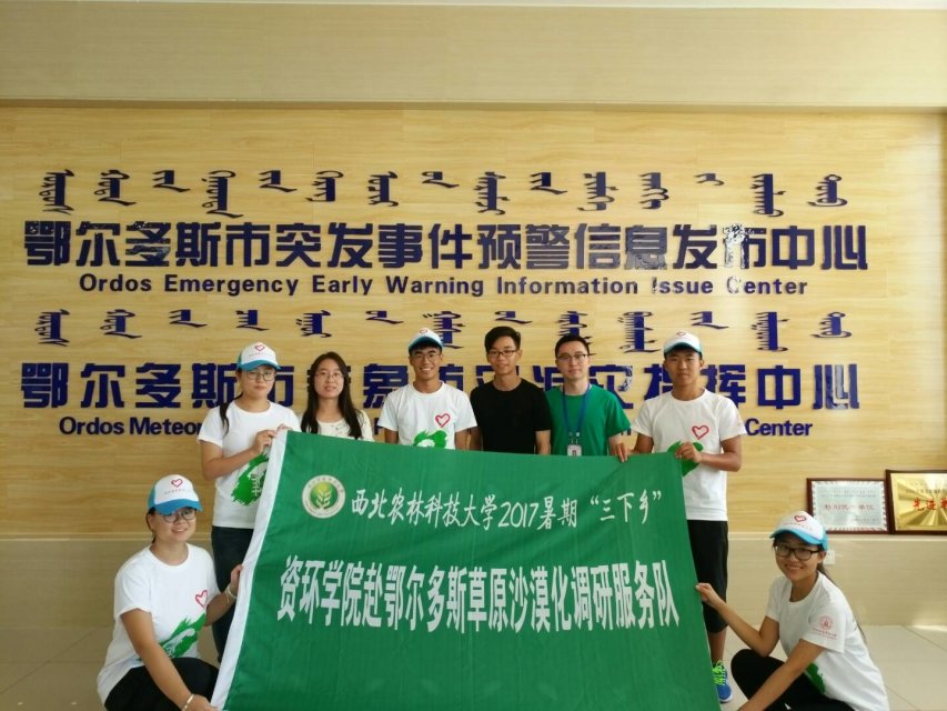 身在草原,自觉应为草原做贡献。在公司组织“青春中国梦 献礼十九大”暑期三下乡活动中,西农英国365集团官网赴鄂尔多斯草原草草场退化调研服务队承担起探寻草场退化原因及宣传防治措施的任务,用自己的力量守护草原的一片绿色。两天时间里,西农学子走进鄂尔多斯气象局和杭锦旗气象局进行气候数据分析和询问相关人员。