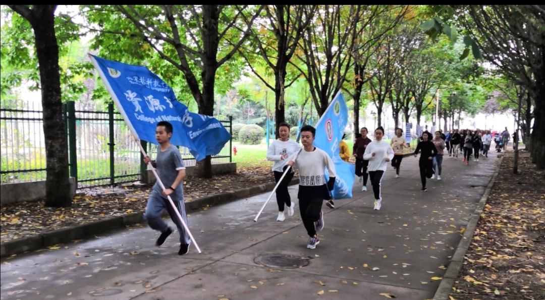纵然秋意泛凉,也难挡热情满腔。田径队的学长学姐早早的在起点等候,带领资环儿做好热身运动,以防他们受伤。随着一声令响,在领跑旗手带领下,奔跑在西农校园中的资环健儿们构成了一道亮丽的风景线。同学们相互鼓励,咬牙坚持,看着飘扬的院旗,迈着坚定的步伐,向着终点前进。是他们用汗水书写了真正的资环精神,展示着资环态度和资环力量,是他们用行动印证了:资环有我,有我必胜!