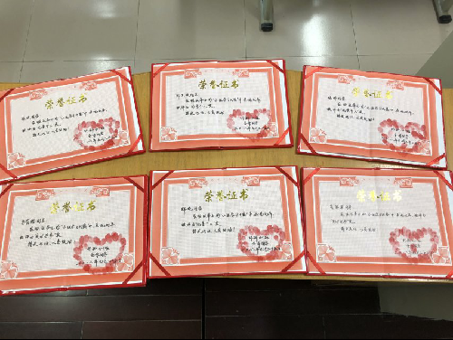 荣誉证书上,28名同学用指纹打造的心形“印章”