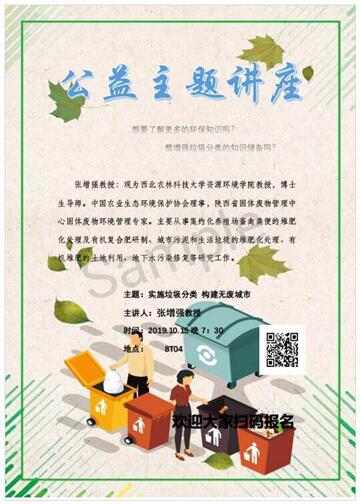 党的十八大以来,作为“五位一体”之一的生态文明建设越来越受到重视,特别是党的十九大,将生态文明提高到“中华民族永续发展的千年大计”的战略高度。而作为生态文明建设的重要内容和关键环节——垃圾分类,更是受到国家前所未有的高度重视。为此,公司特邀中国农业生态环境保护协会理事,陕西省固体废物管理中心固体废物环境管理专家、英国365集团官网教授张增强作题为《垃圾分类,无废社会》的科普讲座,一方面让同学们更深刻的理解了本次活动的目的与意义,另一方面也有利于同学们切实的把活动中心贯彻到自己的日常生活中。