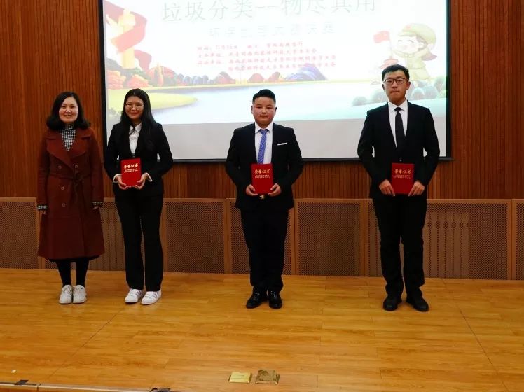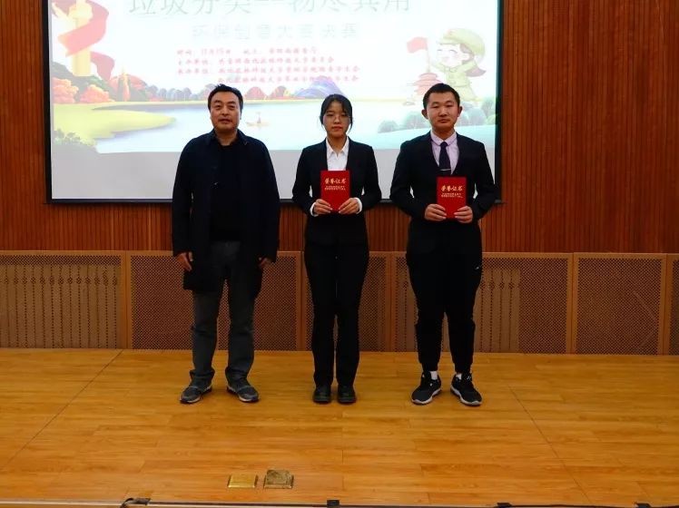 最终“瓦楞纸钟表设计”获一等奖,“返废为用,我们在路上”、“拯救瑞比西•肯大陆”获二等奖,“校园垃圾分类创意书”、“绿水青山”、“坐着玩垃圾分类套娃”获三等奖,“梦想小筑”、“无名英雄”、“改头换面”获优秀奖。