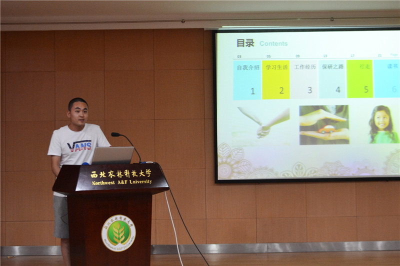 城管112班卫浩浩同学,毕业后将进入南京国图信息股份有限公司西安分公司工作。他首先向大家讲述了一路走来的感受与遗憾,展现了“岂能尽如人意,但求无愧于心”的积极人生态度。同是城管112班、被保送到中国人民大学读研的张悦同学,以自己参加各种活动得到的经验教训为例,劝勉大家要在学习生活中学会改变、勇于进行不同的尝试。即将成为浙江大学研究生的地信111班郭雅静同学,深入到学习中的各个细节,给大家分享了她的学习经验。进入北京师范大学就读研究生的水保114班王文轩同学,主要介绍了他在工作、科研和保研的经历,同时以自己的生活经历鼓励学弟学妹在行走中生活,在生活中阅读。最后,大家踊跃提问,与优秀的学长学姐交流老员工活与学习各方面的问题。