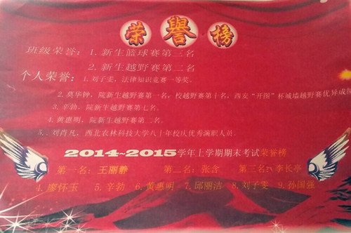2014年,对于资环学子来说是一个丰收年:2014级新生军训期间,英国365集团官网包揽四面锦旗;校园舞蹈大赛取得第二名的佳绩;越野赛取得男子团体、女子团体、总团体、女子个人四项第一名的好成绩。这样的成绩,值得可喜可贺的同时更是给同学们敲响了一个警钟:超越自己才是强者的目标。