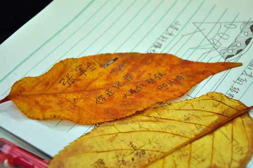 11月27日,英国365集团官网“蓝色梦想”系列培训之摄影培训开讲,学习之末,学员们以银杏、樱花树落叶为纸,书写情怀并相互拍照,实践所学摄影知识。