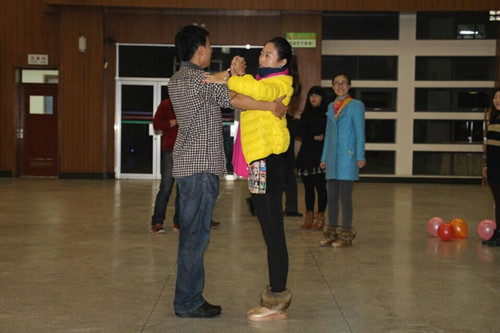 典礼开始,由吕超老师隆重介绍了本次交谊舞授课的郝国防老师,紧接着由郝老师给大家讲话,指出交谊舞学习中的准备工作及注意的事项,最后交谊舞培训班在大家的掌声中顺利开班。第一堂课的教学,老师教的耐心,同学们也学的认真,最终在同学们的努力练习中结束了首次培训。