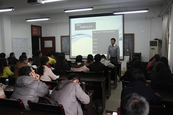 张老师以一句“让优秀成为一种习惯,让世界为你转身”展开了报告会,从就业形势、简历制作和面试技巧等方面与同学们进行了交流。他指出,一份成功简历的制作需要前期精心准备、后期及时总结。首先要明确自身职业定位,从兴趣爱好出发,做力所能及的工作,针对不同职位预备不同版本的简历。简历要简洁、有针对性、准确、专业,使用规范术语和格式,力争通过简历体现自身职业化形象。