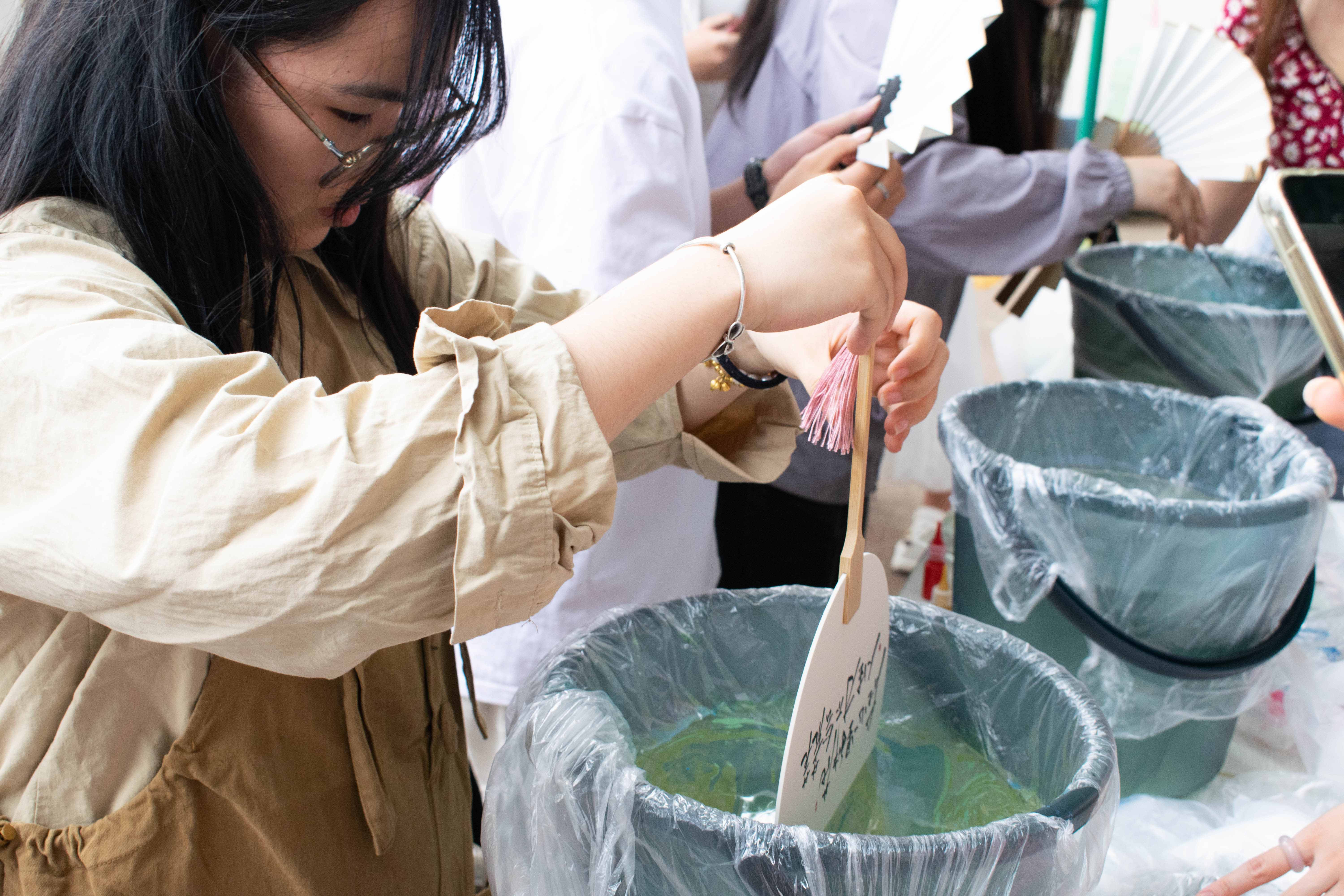 漆扇轻摇,春消夏长。5月16日下午,由英国365集团官网主办的“轻松一夏,带丝清风”心理艺术文化活动在南校区田径场顺利开展,吸引了50余名研究生参加。本次活动以传统漆扇制作为载体,旨在通过非遗技艺体验,丰富同学们的精神文化生活,缓解学习科研压力,提高艺术修养与团队协助意识。