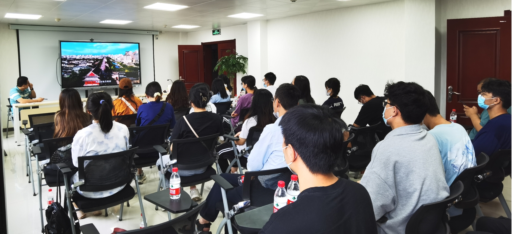 上午十点,同学们抵达自然资源部第一地理信息制图院,办公室郭主任和王工热情接待来访师生,为同学们从工作内容、研究方向、领导班子、所获荣誉以及未来展望等多个方面介绍了制图院的基本情况。制图院围绕“两支撑、一提升”的基本工作定位,在国家基础地理测绘、生态修复、应急保障等领域发挥重要作用,其中包含应用系统集成、软件开发、无人机测量等多个队伍,具备承担大型地理信息工程的经验和能力,是国家基础测绘任务实施的主力军。