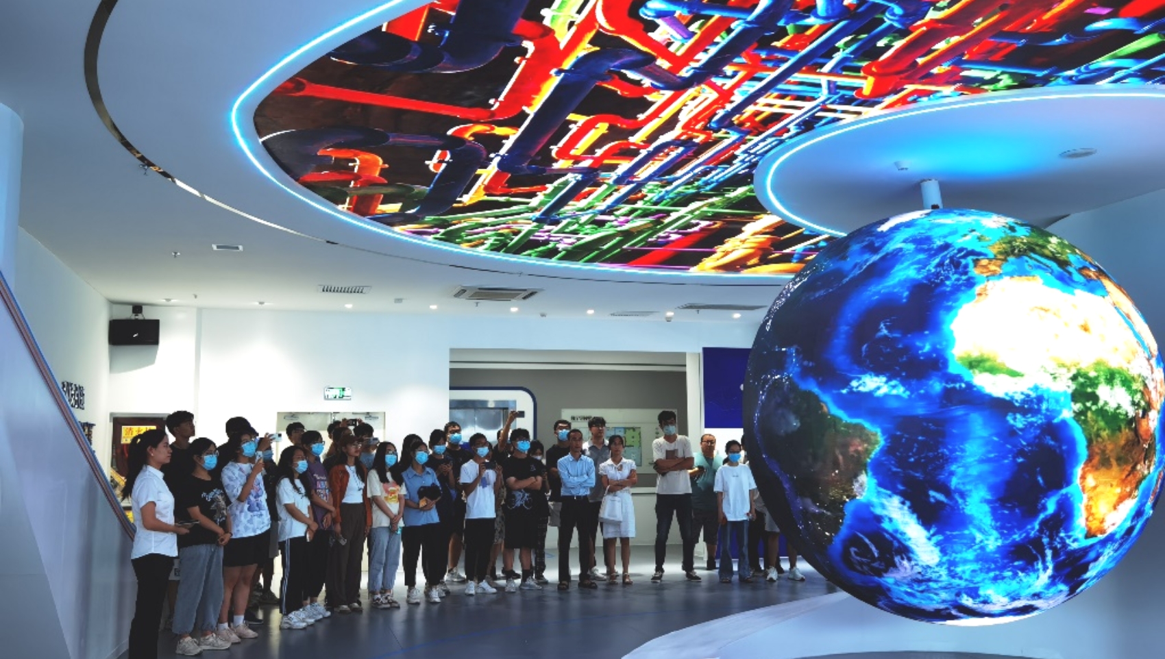 下午,全体同学前往中煤航测遥感研究院进行参观学习。在遥感院沙主任的带领下,同学们走进中煤航测遥感集团历史博物馆参观。讲解员向同学们介绍了中煤航测遥感集团的历史,通过LED演示地球的方式简短介绍了煤航的工作与荣誉。在四折幕演播厅内,用3D展示大地神采,从俯视、侧视和前视的角度,从星空、城市到乡野,让同学们在画面中深入奇境,感受三维立体成效。进入仪器博物馆后,近距离观察航测成图发展过程中的仪器,从纠正仪到GPS接收机和全站仪等,都在文物修复和航测发展中都起着重要的作用。
