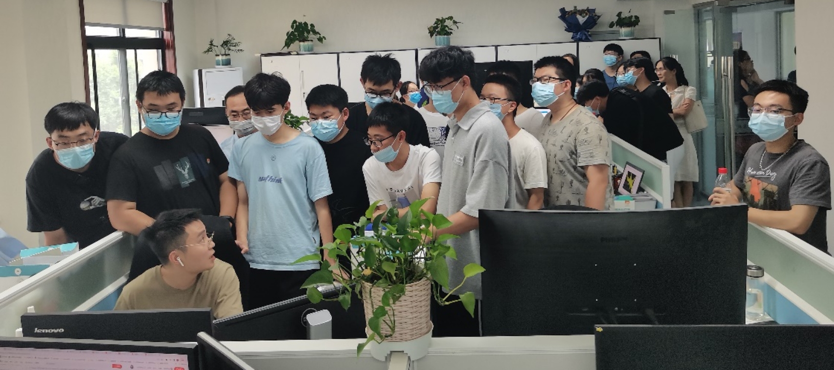 随后,郭主任带领师生到不同的办公区进行观摩学习,主要包括制图区、软件开发区、遥感影像处理区以及空间规划区等,就地形图的编绘、影像处理过程、DOM的生产流程等方面进行讲解。其中,制图区的工作人员向同学们介绍了制作地形图的基本过程,并以1:5万的地形图为例进行学习。与此同时,还为同学们讲解了地形图上各类要素的协调方法以及地物间矛盾的解决方式,丰富了同学们地形图编绘的知识。除此之外,在软件开发区,工程师就秦岭生态环境保护网格化监管平台、视频综合监管系统的数据资源、任务管理、实时监控等各部分进行展示,对各个部分的运行方式及作用进行详细介绍,并就两个系统进行了对比,二者优势互补,共同为陕西省秦岭生态环境保护工作提供技术支撑。