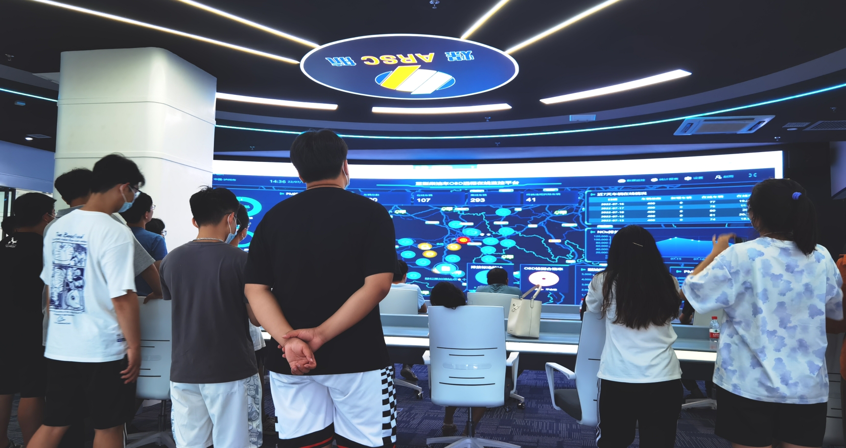 煤航是大比例尺航空摄影测量的引领者,承担着各种各样的任务项目,如地下空间信息监测,地质灾害遥感调查监测,智慧交通和城市三维技术等。讲解员对搭载在飞机上第一台数码相机DMC进行了简单介绍,并表示仪器是技术发展变更的见证者,虽然这些仪器现已被淘汰,但都为当时航测的发展做出了更有意义的贡献。讲解员还为我们展示了全球卫星在轨状态平台、地质灾害预警中心,运营车辆主动安全防御系统以及矿区修复治理监测等平台,在这些系统的展示过程中,同学们感受到了科技的力量和技术的变更,更真切的体会到了航测一路的发展奋斗过程。