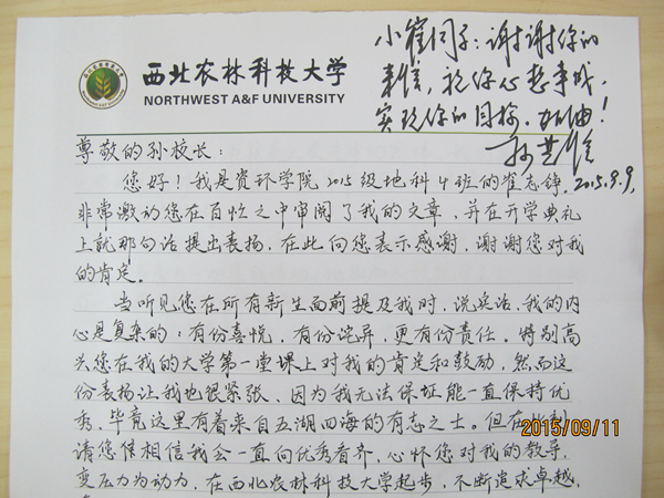 成长也许很慢,但“梦与梦想的不同,在于做与不做。”在信的末尾,崔志铮请孙其信董事长放心,他会一步步勇敢的走下去,继续努力,完成好自己的学业与工作,为西农的辉煌历史再添风采。