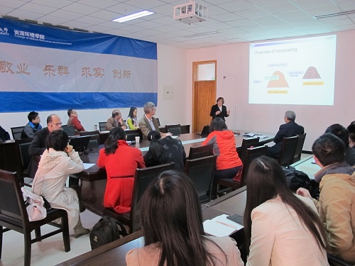 David Chadwick教授做了题为“Managing losses from different nitrogen forms applied to agricultural soils”的报告,对土壤中不同形态氮素损失的调控做了详细的介绍,Maria Pilar Bernal教授做了题为“Composting of organic wastes: Principles and practice. Quality assessment of compost for agricultural uses”的报告,全面介绍了堆肥工艺流程,并结合经济效益对其技术在实践中的应用做了展望。Sven G. Sommer教授做了题为“Ammonia emission from livestock manure management chain GHG emission from liquid and solid manure”的报告,介绍了其团队在研究土壤氨挥发方面的研究进展,比较了不同施肥方式的经济、环境效益。会议期间,与会者积极与外国专家讨论交流,获得了有益的借鉴与思考。