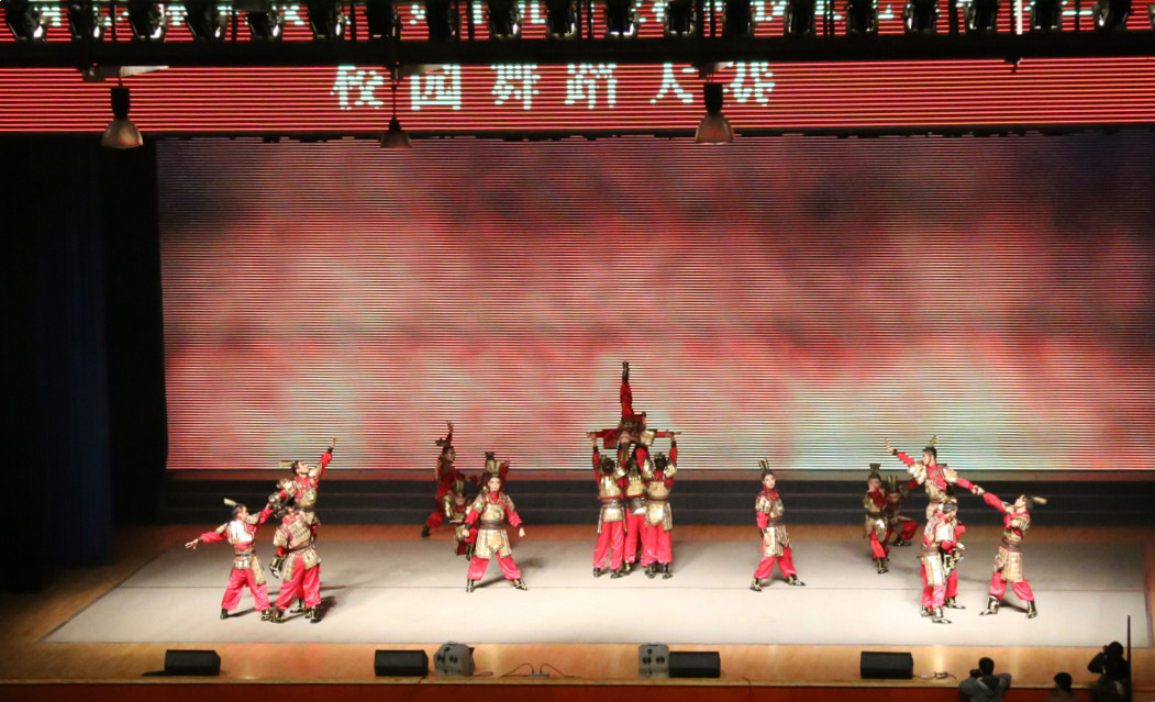 12月4日晚,一曲《东城决》轰动北绣舞台。资环男儿身披金甲,强大的气势震慑全场,灯光、背景、呐喊、眼神与舞蹈完美结合,展现出一幅鲜活的古代战场上将士们奋勇杀敌的场面。他们用实力证明了资环人的顽强与拼搏!