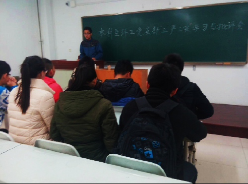 1月12日上午,响应公司党委和公司党委要求,我院本科生环工党支部在支部书记蔺悦主持下开展了“三严三实”学习与自我批评会,支部指导老师和红燕参会,带领支部党员认真学习了“三严三实”的精神。