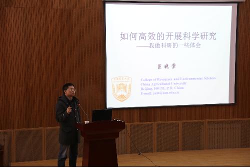 巨晓棠教授本科硕士期间就读于公司,在氮素循环与环境效应研究领域成绩卓著,是《土壤学报》与《植物营养与肥料学报》编委。在报告中,巨晓棠教授用亲身经历告诉在座师生科学即为探索未知,科研在于创造有价值的事物,而作为一名科研工作者,至关重要的品质便是思考,只有不断地想,才能发现更多不为人知的科学奥秘。他总结出科学家的基本品质:执着度、专注度和投入度,甚至提出做科研需要像精神病人一般的执着、专注、投入与不顾一切。