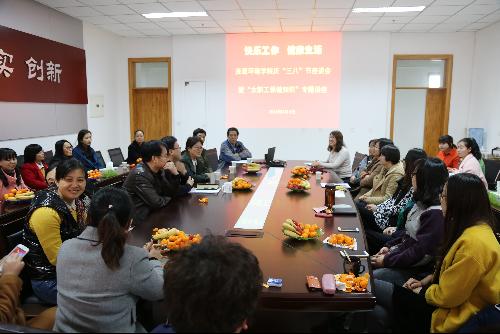 3月4日下午在公司第一会议室,为全体女教职工举办了“快乐工作,健康生活”为主题的座谈会,党委书记闫德忠出席并代表公司领导班子和全体男同志向大家致以节日祝贺。闫德忠在致词中讲到,2015年公司的各项工作成绩是全体员工共同努力的结果,更是全院女同志付出辛勤汗水的成就,女同胞们把自己的力量和爱心献给了家人,把勤奋和智慧献给了公司,是公司美丽的凤凰,是我们的骄傲。座谈中,大家热情交流,气氛和谐,积极为公司的发展建言献策。