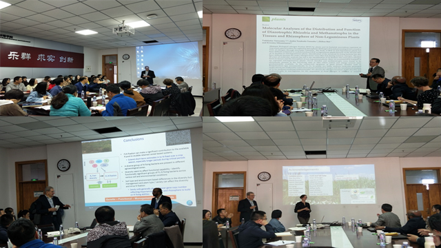 Vadakattu, Gupta研究员主要研究农业土壤中土壤生物的遗传多样性、功能力和恢复力,微生物与原生动物的相互作用及其对微生物多样性和生物功能的影响,曾于2015年荣获澳大利亚土壤科学学会普雷斯科特奖章。在国际知名刊物发表论文150多篇,论文被引用次数累计达3000多次。会上,Vadakattu, Gupta研究员作了题为“Diazotrophic N fixation in cereal crops and grasses”的报告,分析了不同土壤类型和植物的固氮能力及微生物群落变化。