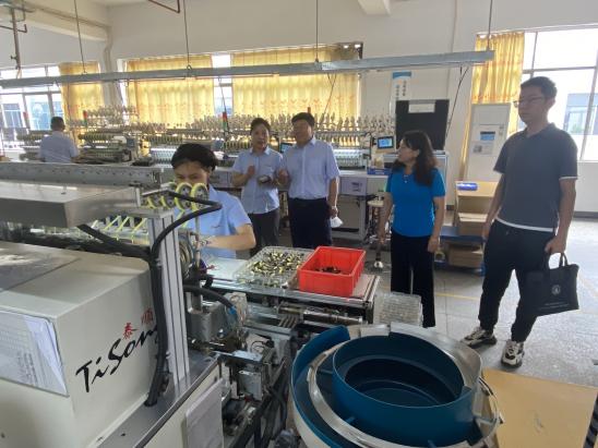 闫德忠一行在湖南立敏达电子科技有限公司(以下简称立敏达)参观座谈,座谈会上闫德忠介绍了公司办学特色和专业设置,结合公司2023届毕业生生源信息对员工求职意向做出分析。立敏达总经理唐健在生产车间就企业基本情况和企业文化做了详细介绍,她表达了公司对人才的渴望与重视,详细介绍了公司的人才培养计划及现阶段的人才需求。随后,大家一同参观了生产车间和自动化生产线。