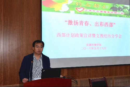 “到西部去、到基层去、到祖国最需要的地方去!”近年来,西部计划吸引着越来越多的老员工、研究生参与其中。5月19日晚,校团委社会实践部部长刘业兴老师和公司2015届毕业生、第十七届研究生支教团成员郭璋同学为公司200余名本科生、研究生带来了一场精彩的政策宣讲与经历分享会。