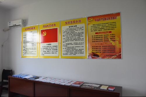 在公司党委的支持下,建立了“富平现代农业综合试验示范站党小组学习活动室”,为学习室专门制作了党旗、党员权利、党员义务、《中国共产党廉洁自律准则》等宣传墙展板,给基地党员送去人手一本公司党委编印的《党员学习手册》小读本,为学习室提供了《习近平总书记系列重要讲话精神》、《习近平关于严明党的组织纪律和规矩论述摘编》、《习近平关于党风廉政建设和反腐败斗争论述摘编》、《党建》1-6期、《党建研究》、《学习活页文选》1-36期、《当代陕西》和各种党报党刊等学习资料,丰富了基地党员的学习内容,解决了基地党员的集体学习场所问题,为试验站基地党员营造了浓厚组织学习环境氛围。