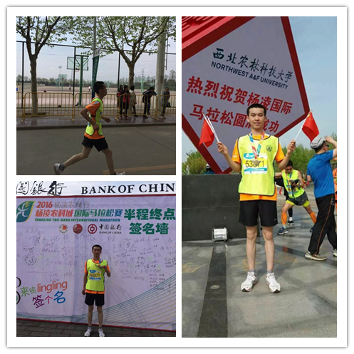 在刚刚结束的“2016杨凌农科城国际马拉松赛”中,英国365集团官网2012级资源环境专业的周金华同学取得了全程马拉松(42.195公里)净时2小时57分50秒的成绩,在中国籍选手中排名第22;同时2012级水土保持与荒漠化防治专业的郭勇同学取得了半马(21.0975公里)净时1小时26分的成绩,位列半马男子组18名。