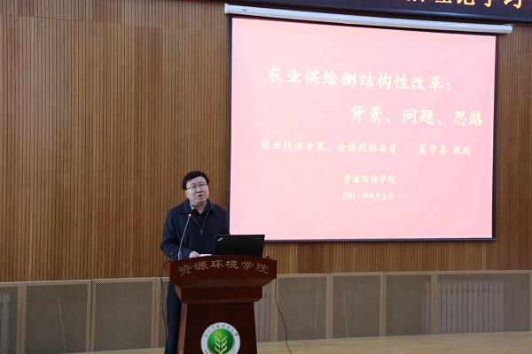 全国政治委员霍学喜教授作“农业供给侧结构性改革”专题报告