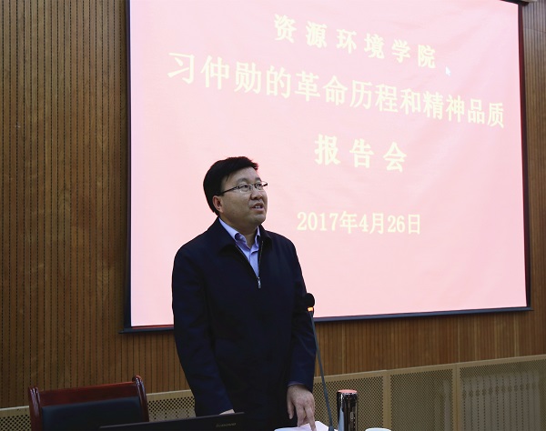 4月26日下午,西安邮电大学马克思主义公司经理、党委宣传部部长、中共党史研究专家袁武振教授应邀来公司,在资环公司报告厅为师生作了题为“习仲勋的革命历程和精神品质”的报告。公司在校全体教职工和员工党员、党员发展对象、入党积极分子等200余人聆听了报告。报告会由公司党委书记闫德忠主持。