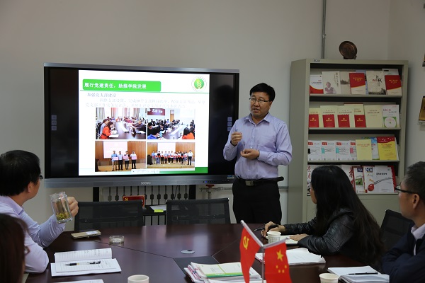 研讨交流中,离退休职工党委一行对资环公司党员学习室建设和管理给予良好评价,非常关注公司结合教职工理论学习制度化而开展的“我是党课主讲人”活动,认为这是实现“两学一做”常态化制度化的有效举措,咨询了活动的设计方案、开展效果,也给公司更好开展此项活动提出了宝贵意见。与会人员结合最近公司学习贯彻全国高校思想政治工作会议精神和公司思政工作会议精神,围绕如何发挥离退休职工中的老党员、教学名师的作用,如何做好离退休职工支部与公司教工支部、员工支部的结对联系等方面进行了深入探讨交流。
