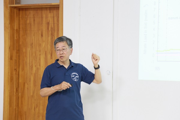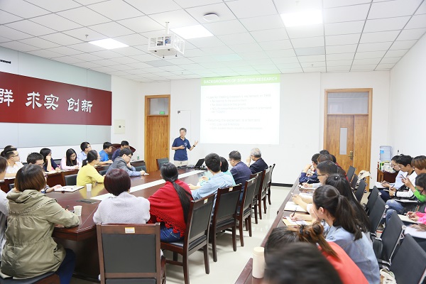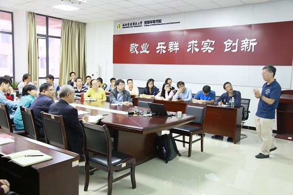 在访问期间,KosukeNoborio博士在英国365集团官网作了题为“Greenhouse gas research in agricultural fields”的学术报告。农业生产活动是温室气体的重要来源之一,KosukeNoborio博士介绍了如何采用涡旋积累技术(REA- relaxed eddy accumulation)以及封闭室法测量施用牛粪的日本草地以及日本和菲律宾稻田的农田温室气体(CH4、CO2、N2O)通量。他们的研究发现在施用牛粪的火山灰土草场中,温室气体的主要成分为NH4+,硝化和返硝化过程同时发生并伴随着 N2O气体的排放。而在低地稻田中,REA法能够测量中小尺度的平均温室气体通量,而覆盖在水面上的封闭室能够测量通过扩散作用或经气泡携带的温室气体通量。由于日本和菲律宾气候差异,稻田可能成为碳源或碳汇。土壤温度的升高和大气压力的降低促使更多气泡的形成,而水稻根系附近的CH4被氧化成CO2。最后KosukeNoborio博士介绍了最新的涡旋积累技术(REA- relaxed eddy accumulation)在西太平洋上测试结果。报告会现场气氛活跃,与会者纷纷表示深受启发,并就自己感兴趣的问题与Noborio博士进行了深入的交流和讨论。