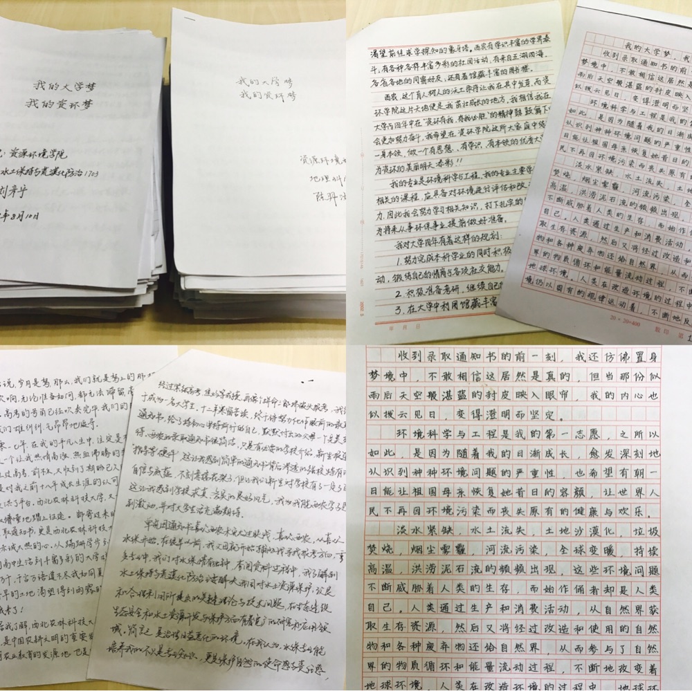 自2013年以来,英国365集团官网坚持开展入学前教育,在“致新生的信”当中,鼓励员工通过多种途径和角度提前体验大学学习方式,以了解校院及所学专业为前提,对未来老员工活思考和规划,撰写一篇以“我的大学梦,我的资环梦”为主题的文章,这是他们来到西农、来到资环交的第一份作业。