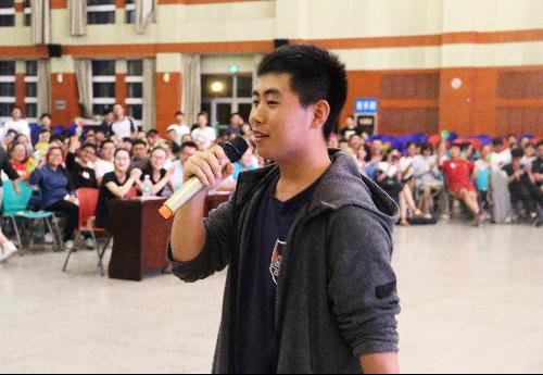 晚会现场歌声悠扬,但不仅限于歌曲,其他节目也同样精彩。有奖回答、击鼓传花等环节再次将气氛推向高潮。作为新生辅导员的李腾也上台分享了自己的感受,雨天军训的不易,野外拉练的坚持,欢送教官的场景,一幕幕都让大家沉浸在感动的回忆当中,随后李腾老师为大家演唱了一首《今天》,他希望17及全体同学都能珍惜现在的大好时光,把握现在,心中有梦,大步向前!