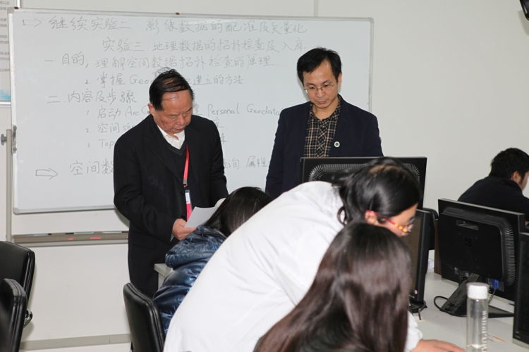 向本春教授走访了公司农业资源与环境科学实验教学示范中心,重点察看了基础分析测定实验室和专业实验室,详细了解了各实验室的人员配置、课程设置、仪器设备等,参观了资源与环境科研实验中心的大型仪器设备。走访结束后,在209实验室听取了张青峰老师地理信息系统原理实验课。