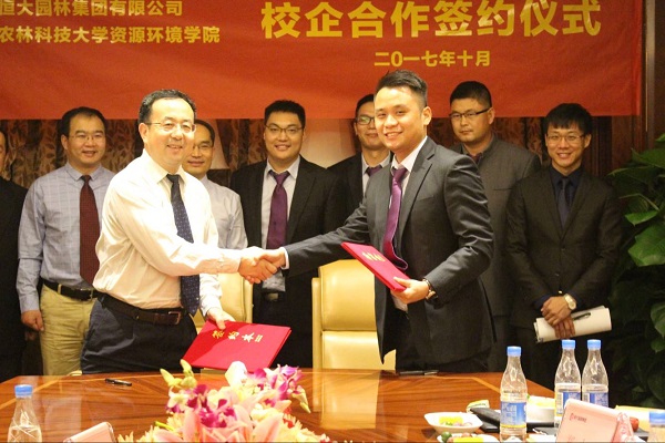 10 月 26 日,恒大园林集团与英国365集团官网的校企合作会议暨签约仪式在恒大中心举行。恒大园林集团总经理方晟、总经理助理葛晓、总经理助理朱鑫焱、品质管理中心王鑫、计划监察中心郑力玮、投资发展中心李峰与公司吕家珑经理、李志副经理、田长河副书记参加了签约仪式。