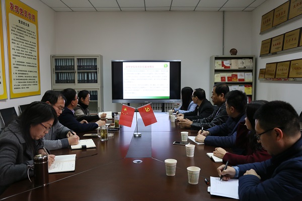 闫德忠首先向宋西德一行介绍了资环公司党员队伍、党委班子组织机构、教工和员工党支部设置特点等情况,以及校、处、院级党员领导干部对接联系教工党支部的工作开展情况。他重点围绕“履行党建责任,助推公司发展”主题,分享了公司党委在推进“两学一做”常态化制度化中,注重问题导向,在全覆盖、重创新、求实效上所做的系列工作。公司党委贯彻落实全面从严治党,严格党员教育管理,狠抓政治理论学习,实行“六学”,建设“五型”党组织,本科生水保支部党员9年坚持“青春点亮夕阳红”,开展“迎新党员义务服务队”、“研究生党员先锋工程”、“讲党课比赛”、固定党费收缴日等系列特色主题活动,取得了显著成效。党委履行党建主体责任,坚持党政协力,统筹兼顾,围绕公司发展大局,做好人才引进、“十三五规划”制定、切实解决教职工关心的系列问题;全面贯彻全国高校思想政治会议精神,落实立德树人根本任务,加强师生的政治思想引领,引导教职工树立正确的价值观,重视教学工作,全力做好学科评估、本科教学审核评估任务整改;加强纪律和学风建设,促进老员工全面成长成才;加强招生宣传和员工就业工作并取得了可喜成绩。严格执行每周三下午的政治理论学习制度,每月举行一次“资环讲堂”报告会,得到广大师生良好反响,全院形成向好向上的政治生态,全面助推公司发展。