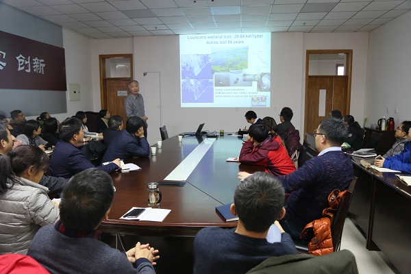 报告会后,与会师生就美国河口“缺氧死亡区”与我国黄河河口区域问题进行了热烈交流,为广大师生开拓了视野,并取得了良好的效果。王建教授现为美国路易斯安那州立大学植物、环境与土壤科学系教授。主要从事土壤养分动力学与重金属环境化学、湿地有机碳转化及温室气体减排等科学研究工作,获得30余项科研项目资助和累积420万美元的科研经费,发表相关科研论文120余篇,在土壤环境化学领域具有重要的国际影响力。