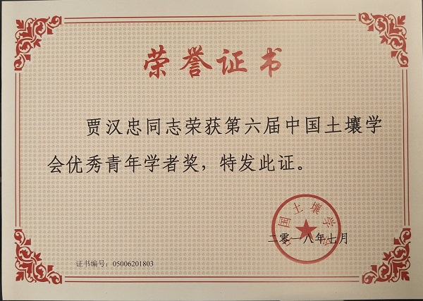 2018年7月4-6日,中国土壤学会第十三届三次理事扩大会议在河南郑州召开,在闭幕式上颁发了第六届中国土壤学会优秀青年学者奖。公司贾汉忠教授荣获此奖。这是公司首次获得该奖项。