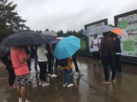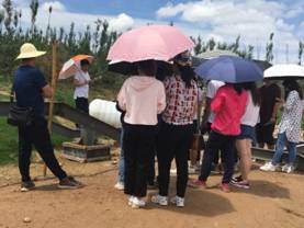 10日,大家冒着大雨驱车近10个小时赶到第一站榆林,开展风沙土改良利用内容的实习。毛乌素沙地治理享誉海内外,治沙技术与成果为国际所公认。11日上午,在陕西省治沙研究所付广军、董强和李军保三位员工的带领下首先参观了位于红石峡森林公园的珍稀沙生植物保护基地、园林观赏植物引种试验区、沙区胡杨引种技术推广基地、飞播低效防护林更新试验示范点、长柄扁桃木本油料林基地等,听他们介绍了几代治沙人所付出心血和艰辛,目前榆林风沙土改良利用常用的措施手段。尽管参观的时候还下着零星小雨,但是丝毫不影响同学们的学习热情。