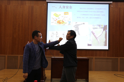会上,王云峰副经理通过列举公司合校近20年来发生不安全事件和数据,深深吸引了听众的注意力。一组组数据、一件件事例,从人身安全、财物安全、交通安全、消防安全、心理安全、网络安全、国家安全、公共事件等方面深入浅出,全面透彻的为员工进行了讲解,在大家心中埋下了一颗颗安全的种子。从日本小员工住宿前先寻找安全通道到高学历知识分子被诈骗大量钱财等,大量的事例让员工提高了安全意识,增长应对安全风险的能力。除此之外,王云峰副处长通过现场与员工互动,示范讲授面对不法分子迫害时的逃生技巧,用娴熟的身手赢得了在场师生的阵阵掌声。