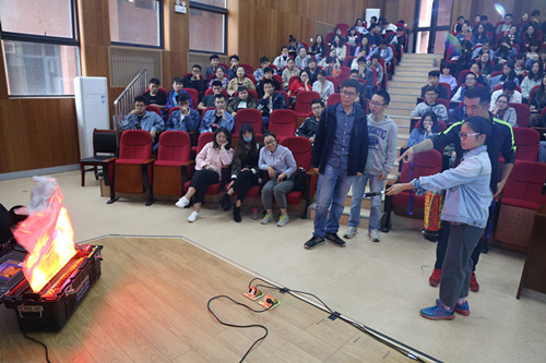 随后保卫处工作人员通过模拟火灾现场示范如何正确使用灭火器以及如何通过判断火势情形进一步采取应对措施,同学们在保卫处工作人员的指导下纷纷练习灭火器的使用,并掌握了使用灭火器的技巧和要领。
