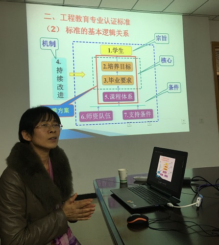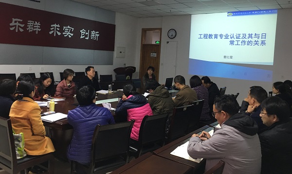 曹红霞教授以“工程教育专业认证及其与日常工作的关系”为主题作了专题报告。他指出,工程教育认证是国际通行的工程教育质量保证制度,也是实现工程教育国际互认和工程团队格国际互认的重要基础,是针对高等教育工程类专业开展的一种合格评价。曹教授以水建公司农业水利工程专业的成功认证为切入点,介绍了工程教育专业认证的背景、认证标准,并结合教师日常工作,讲解了工程教育认证与教师的关系。“工程教育专业认证对强化和规范专业建设,提高员工工程实践能力,增强专业的核心竞争力,增强专业的社会影响力和声望,吸引优秀的员工报考本专业,提高本专业社会和企业认可程度等都是有益的,同时也为员工今后的就业、升学以及长期职业发展创造有利的条件,所以,教师和员工都将是工程教育专业认证的受益者”。通过对认证标准的具体内容解析,指出“要想通过工程教育认证,专业要从培养方案、毕业要求、课程体系等多个方面与认证标准的指标点无缝对接,每门课程都要能够实现其在课程体系中的作用,课程目标要与相关毕业要求有明确的对应关系,课程内容与教学方式要能够有效实现课程目标,课程的考核方式、内容和评分标准能够针对课程目标设计,考核结果能够证明课程目标的达成情况,因此,每位教师针对自己的课程要进一步完善课程目标、课程内容和考核方式,为专业的顺利认证提供必要的资料。”