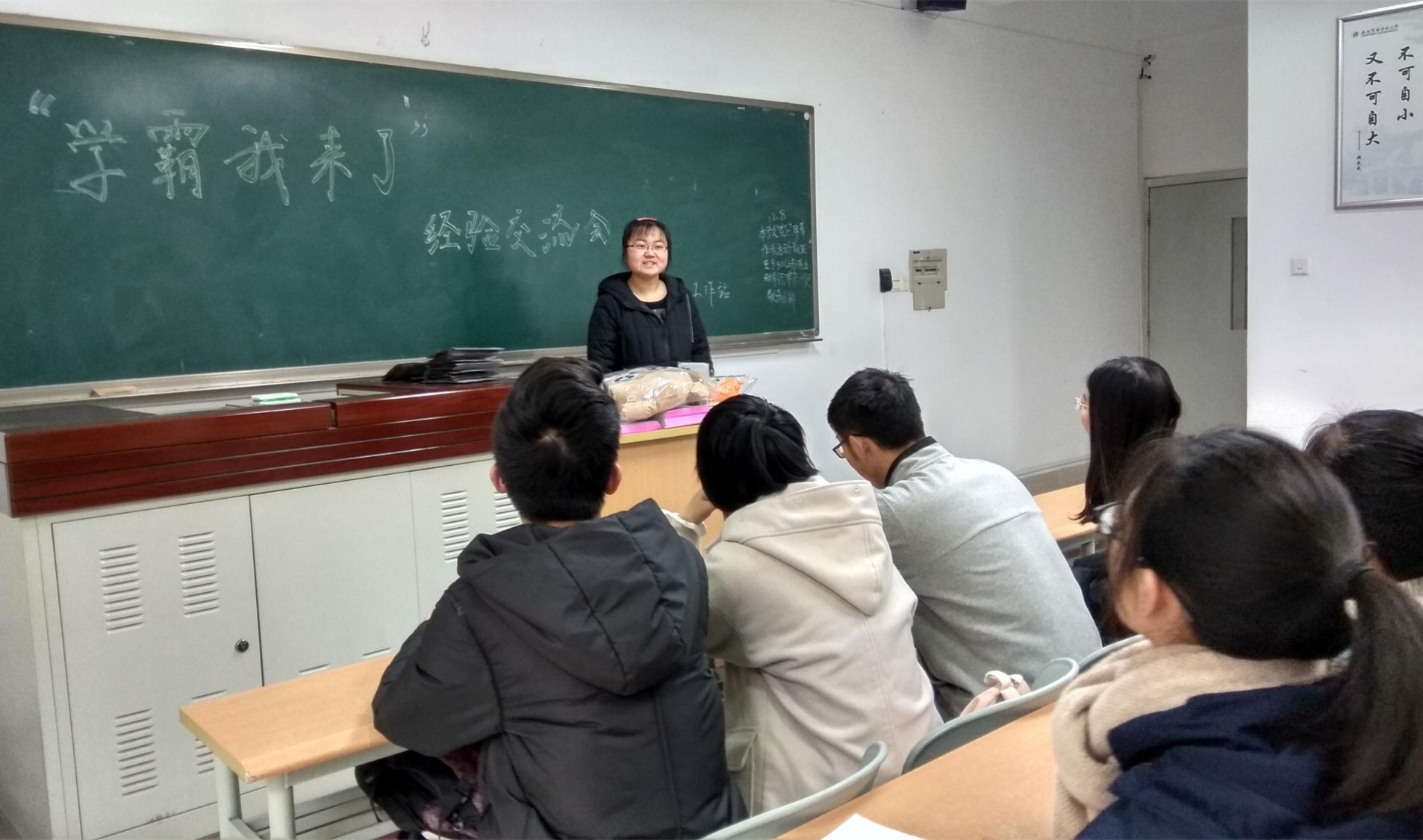 为进一步推动学风建设,营造浓厚的学习氛围,2018年12月8日,继“学霸我来了”线上投票结束后,资环易班工作站在8119教室举办了“学霸我来了”学习经验交流暨颁奖会。优秀笔记的作者交流了做笔记的经验和学习建议,各年级员工听取和交流了做笔记的方法。